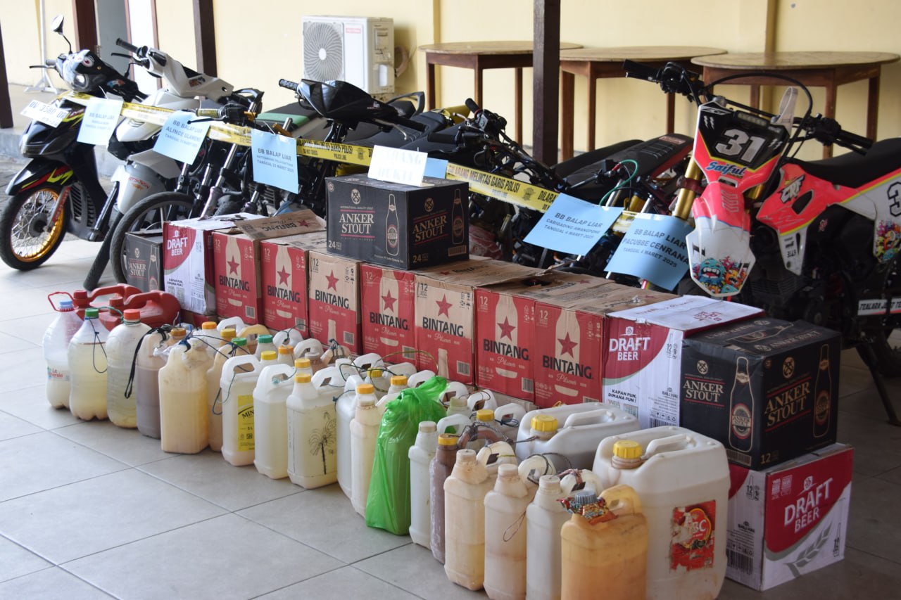 • Balapan liar: 138 unit sepeda motor, 3 unit mobil, 123 unit kendaraan penonton, dan 105 buah knalpot racing.